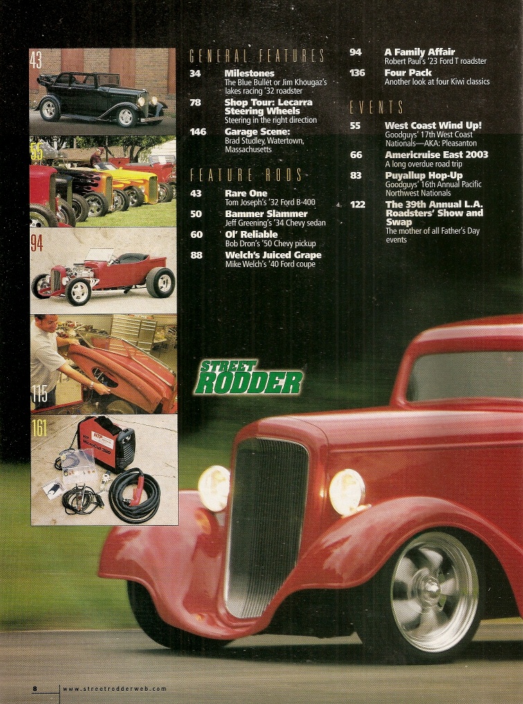 Reviews STREET RODDER 2004 JAN - BILL MITCHELL's WILD ROD, HOW TO AGE FIBERGLASS