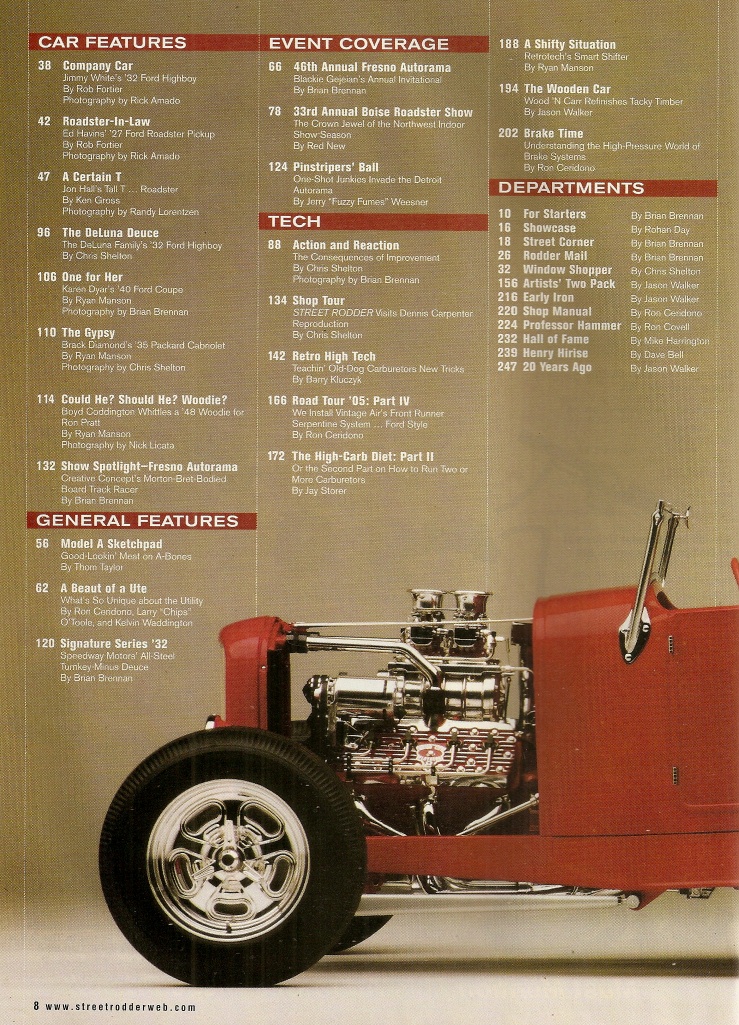 Reviews STREET RODDER 2005 AUG - NEW WOOD FOR A 28 FORD WOODIE PANEL, CARBS + LS1