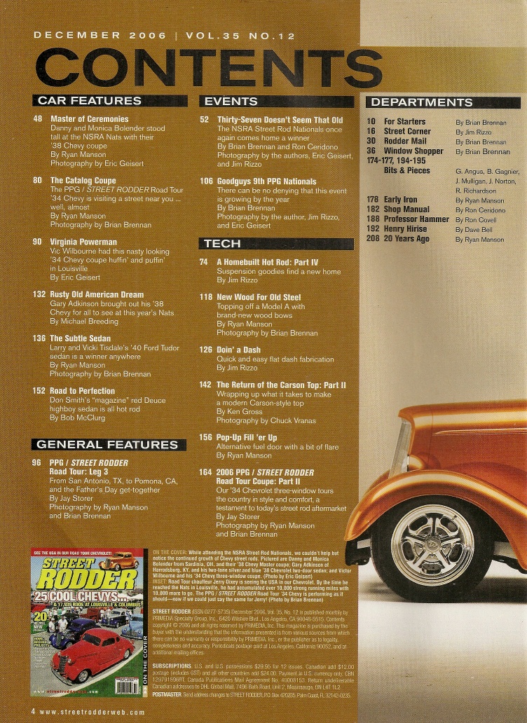 Reviews STREET RODDER 2006 DEC - CHEVY SPECIAL, POP-UP FUEL FILLER DOOR, CARSON TOP