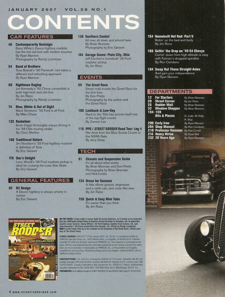 Reviews STREET RODDER 2007 JAN - CHASSIS & SUSPENSION SCIENCE, CUSTOM MINI TUBS