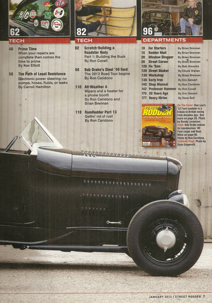 Reviews STREET RODDER 2012 JAN - 'A' PICKUP GETS A HEATER/WIPERS, SCRATCH ROADSTER