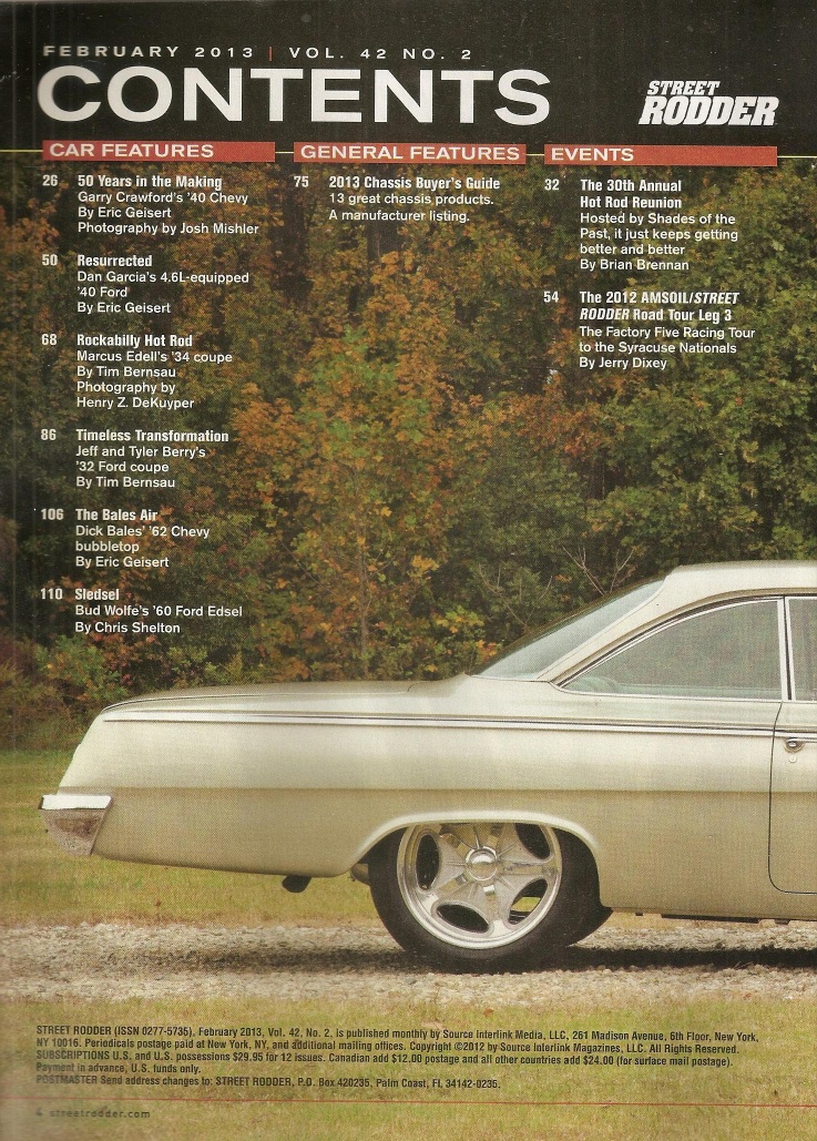Reviews STREET RODDER 2013 FEB - CHASSIS Spcl, 61 BUBBLETOP GETS 500 CADDY, 60 EDSEL