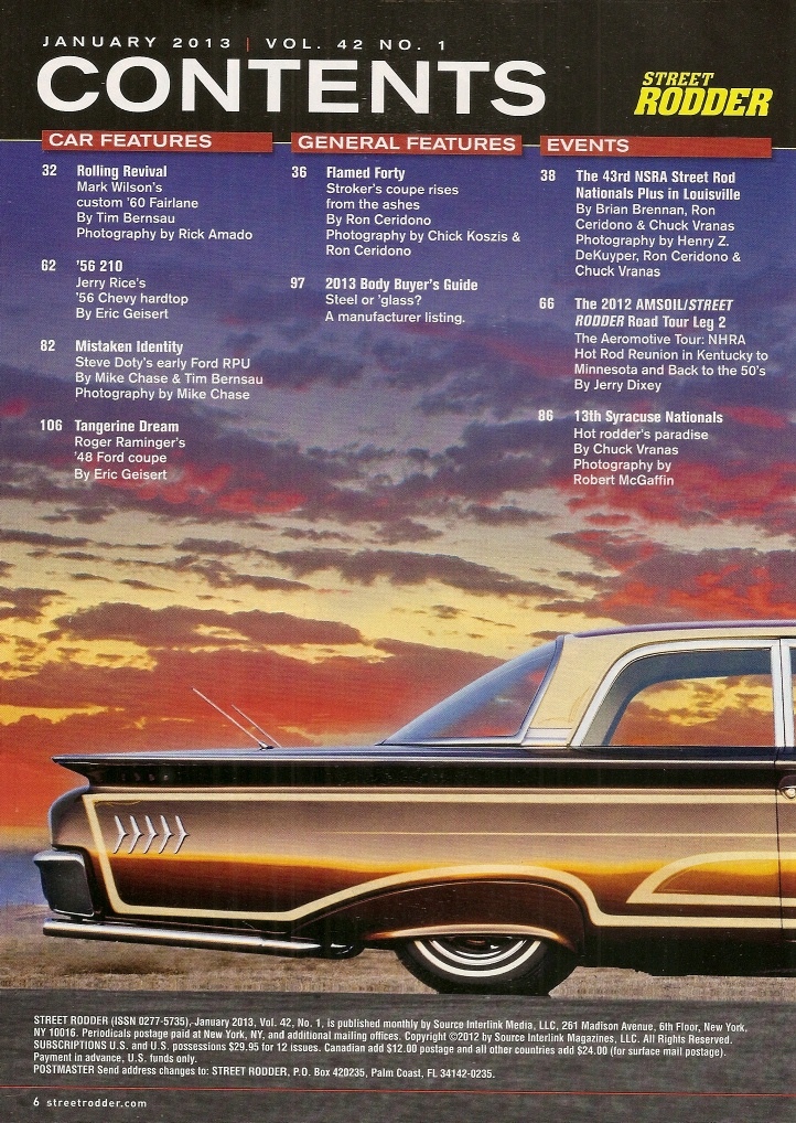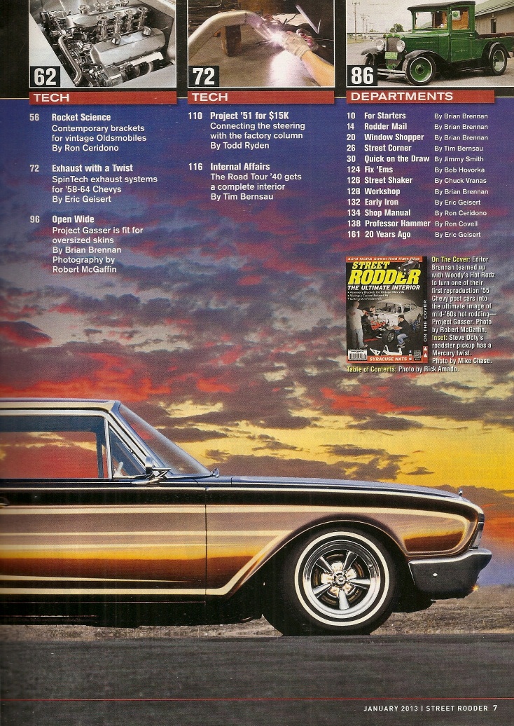Reviews STREET RODDER 2013 JAN - OLDS ROCKET BRACKETS, 58-64 CHEVY CUSTOM EXHAUST