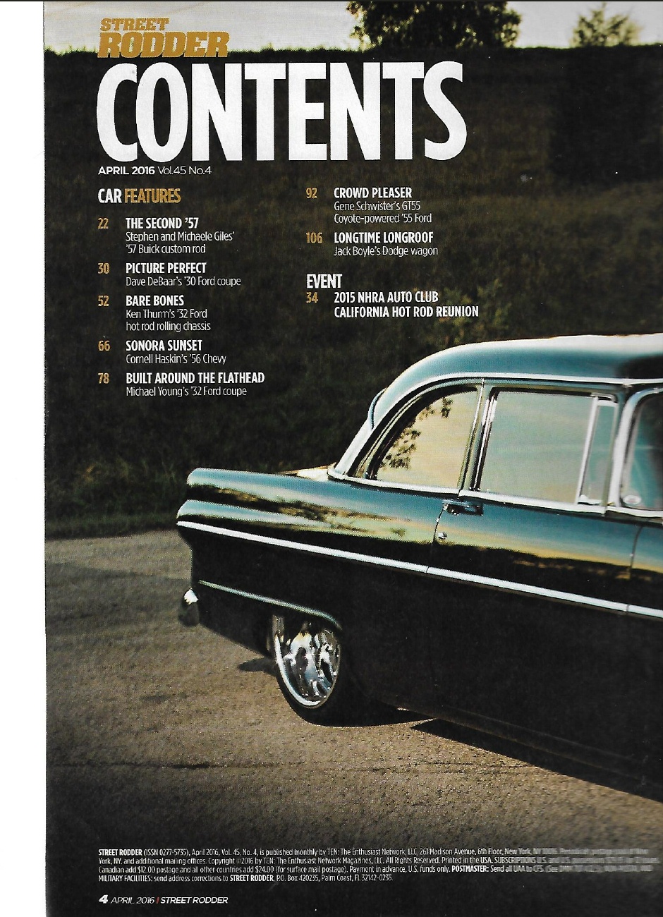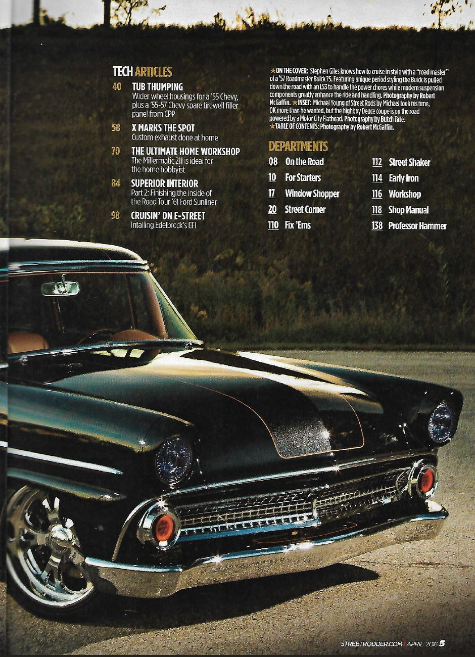 Reviews STREET RODDER 2016 APR - '57 BUICK CUSTOM ROD, BIG TIRE WHEEL WELLS,MIG WELDING