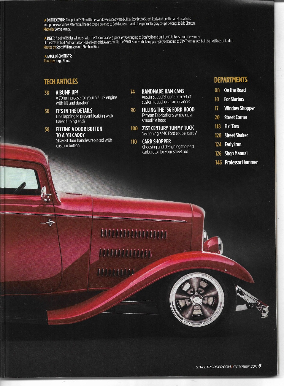 STREET RODDER 2016 OCT - HANDLES TO BUTTONS,FILLING A HOOD, CUSTOM AIR CLEANER