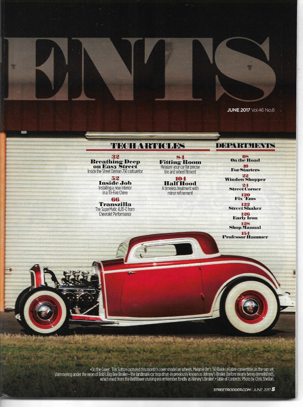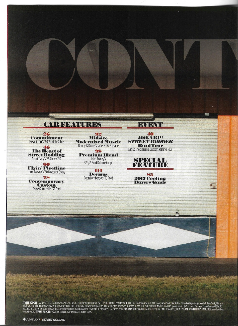 STREET RODDER 2017 JUNE - 4L85-E SWAP, TRI 5 UPHOLSTER, A HALF MODEL A HOOD