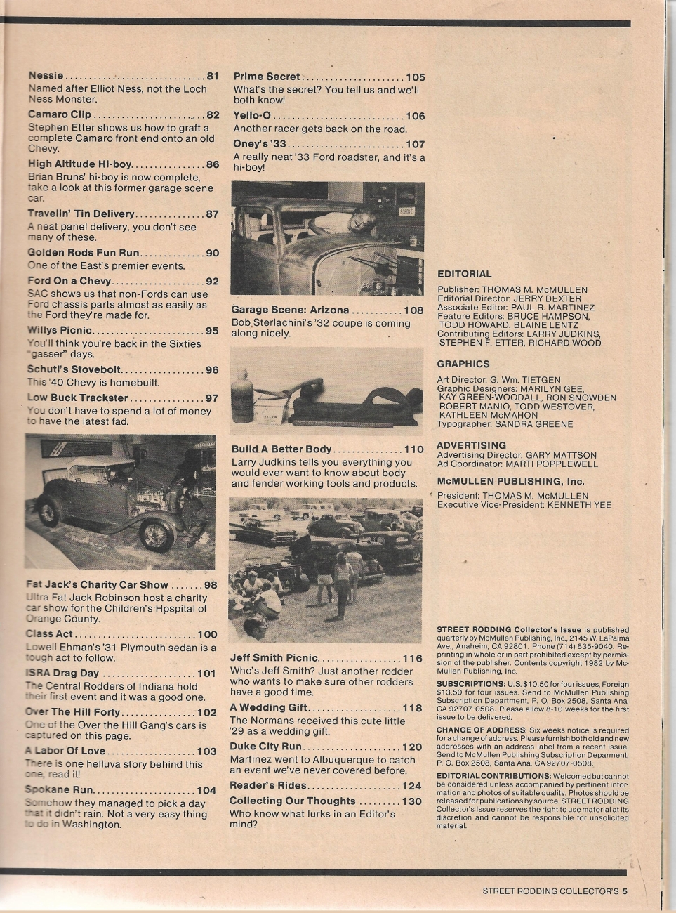 Reviews STREET RODDING 1982 FALL - JIM "BONES" NOTEBLOOM, '27 SEDAN DELIVERY, NESSIE