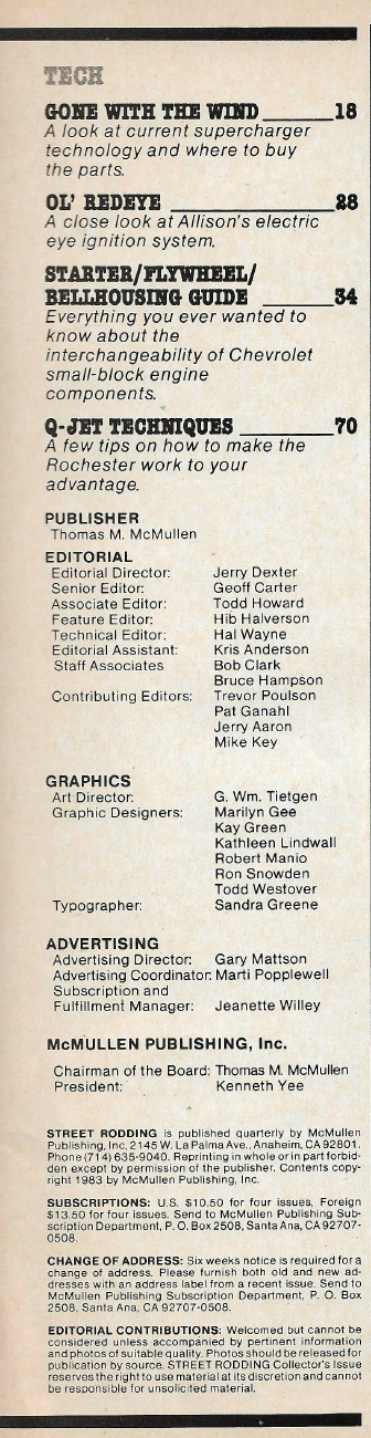 Reviews STREET RODDING 1983 FALL - Q-JET, SUPERCHARGER TECH,'37 FORD CONV,BARETT-LELAND
