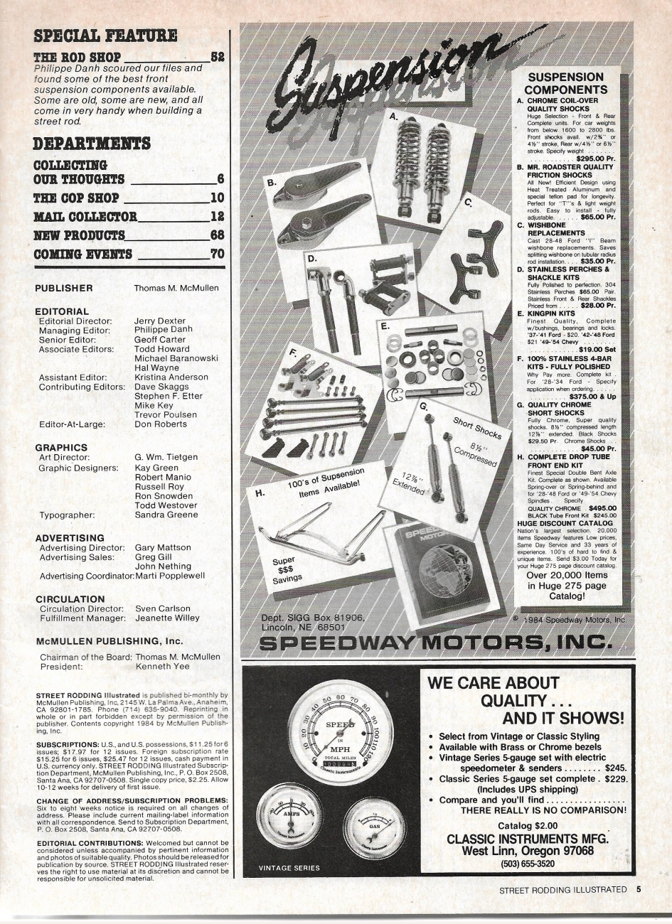 Reviews STREET RODDING ILLUSTRATED 1984 JULY - FRONT SUSP GUIDE,WINTER CAR SHOW ROUNDUP