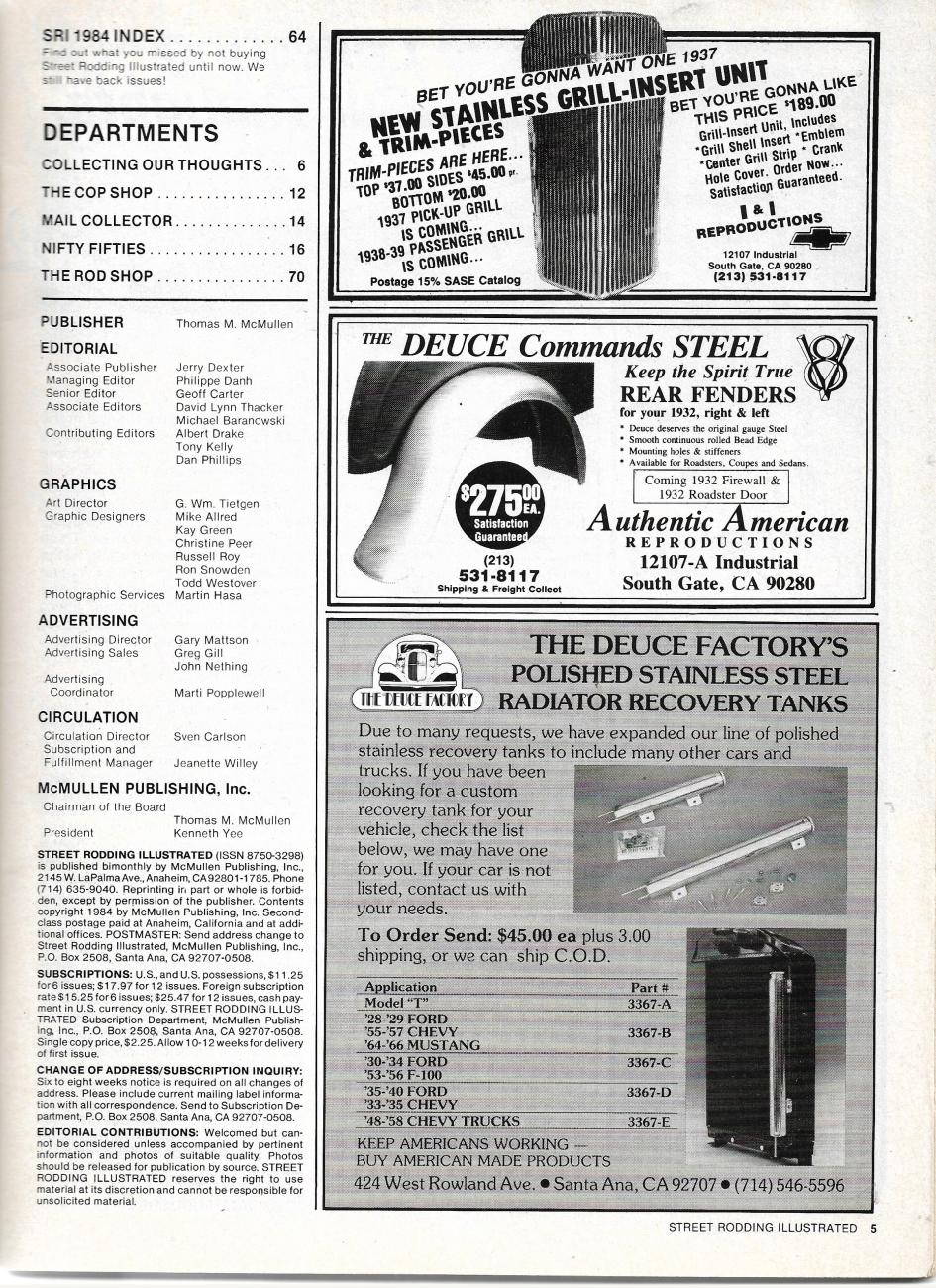 Reviews STREET RODDING ILLUSTRATED 1985 JAN - TURBO LA SALLE, SAN JOSE, '32 AUSTIN