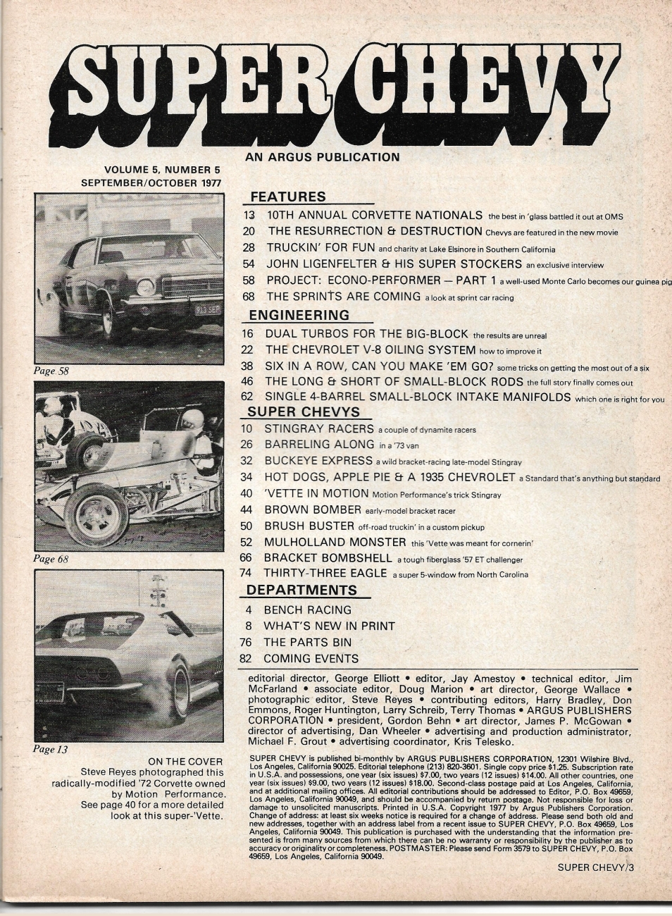 Reviews SUPER CHEVY 1977 OCT - TURBO CHG BIG BLOCK, BUILD A 6 CYL, SMALL BLK MANIFOLD