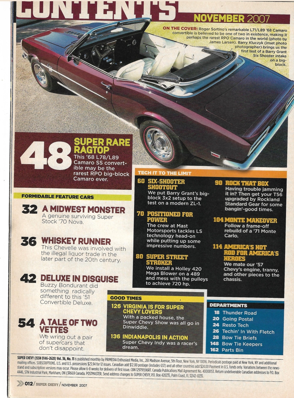 Reviews SUPER CHEVY 2007 NOV - L89 '68 CAMARO CONV, NOVA SUPER STOCKER, 396 CHEVELLE