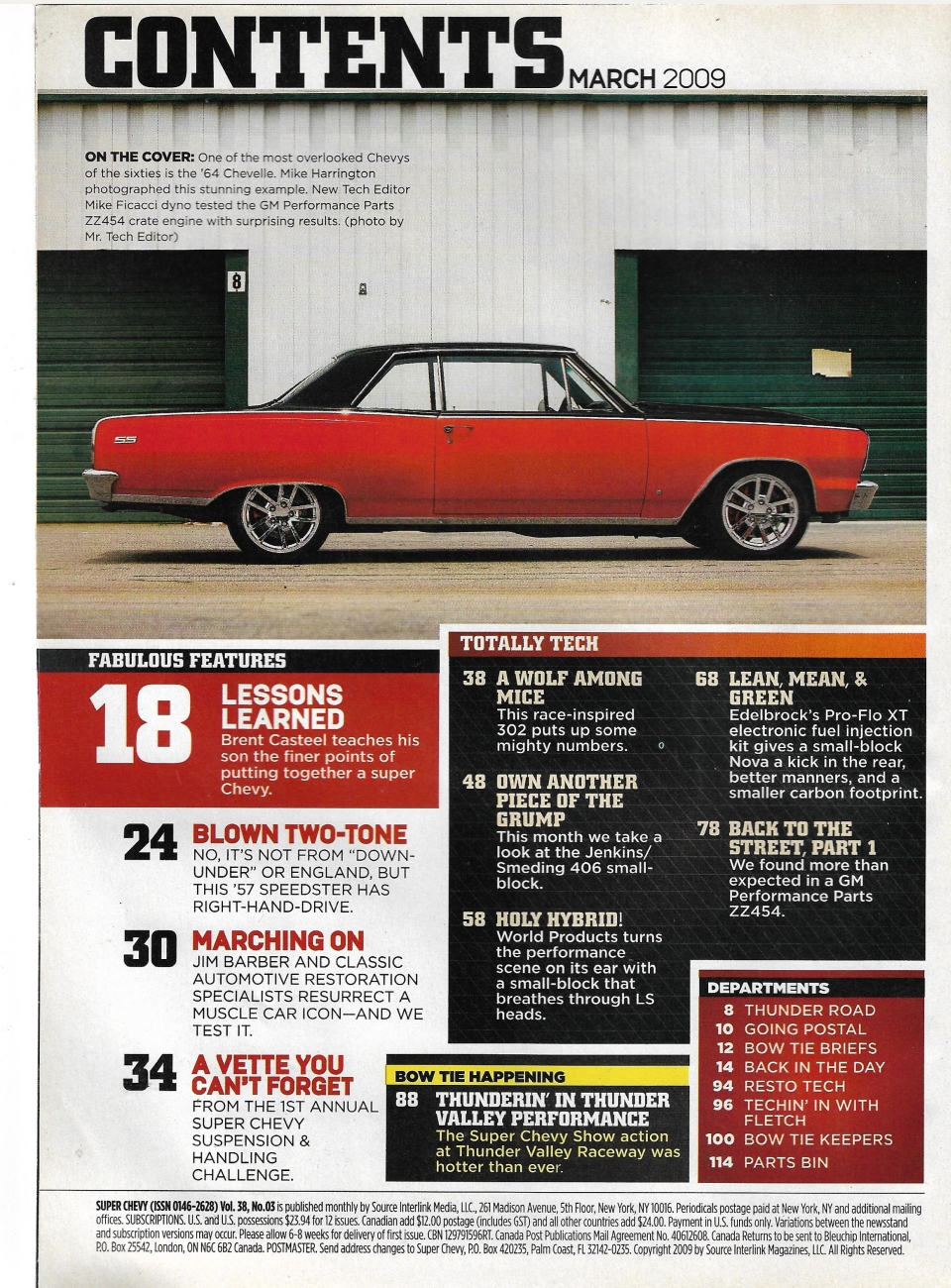 SUPER CHEVY 2009 MAR - 427 YENKO CAMARO, SMEDING JENKINS 406 BUILD, INJECTIONS