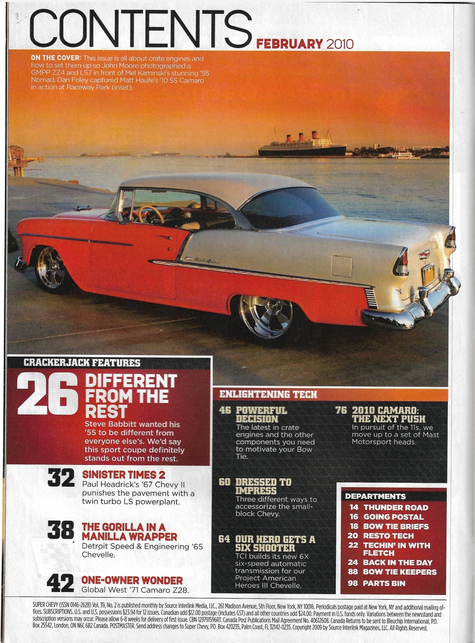 Reviews SUPER CHEVY 2010 FEB - MAIL ORDER LS7-ZZ4, '67 CHEVY II, '55 BEL AIR 696 HP*