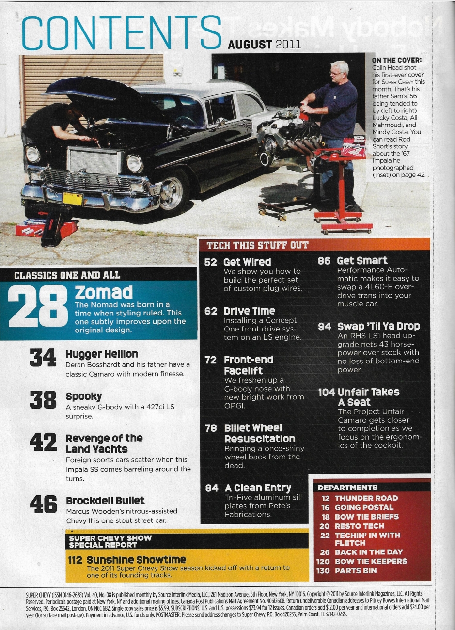 Reviews SUPER CHEVY 2011 AUG - NOMAD, '69 CAMARO CUSTOM, '64 NOVA, G-BODY MALIBU