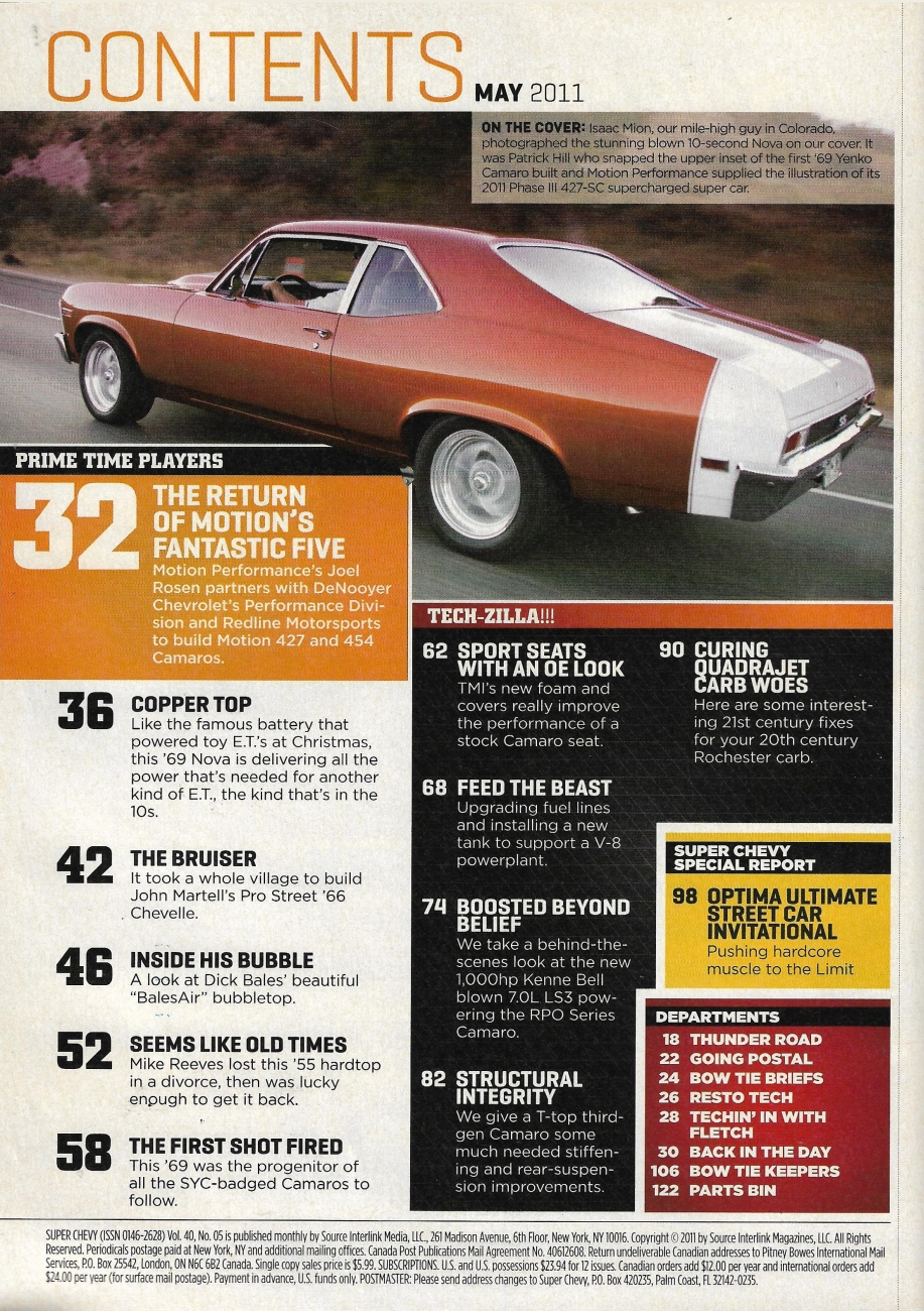 Reviews SUPER CHEVY 2011 MAY - UPGRADE FUEL SYS, '69 YENKO CAMARO PROTOTYPE