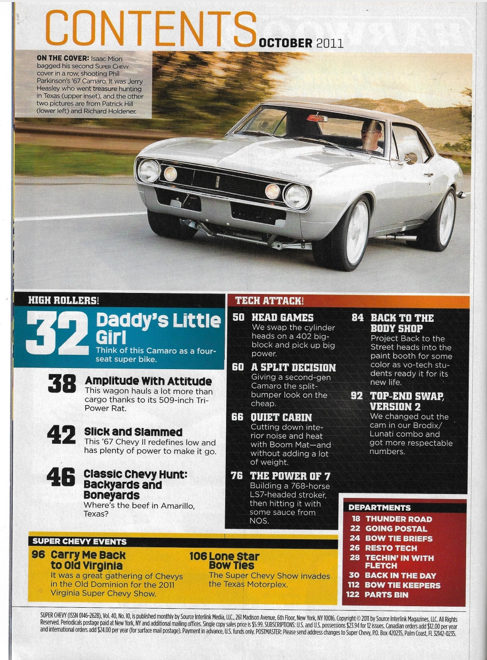 SUPER CHEVY 2011 OCT - CAMARO NOSE JOB, 468+LS7 HEADS FOR MORE HP, '67 CAMARO