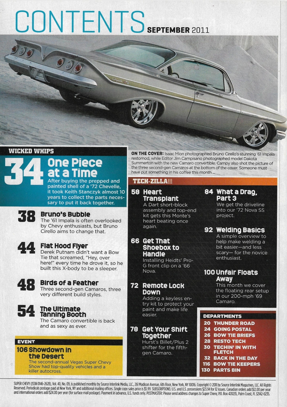 SUPER CHEVY 2011 SEPT - BLOWN Z28, MODIFIED RS, STOCK SS396, CAMARO CONV