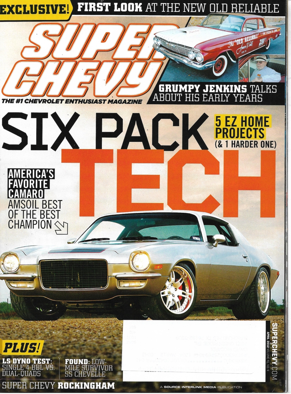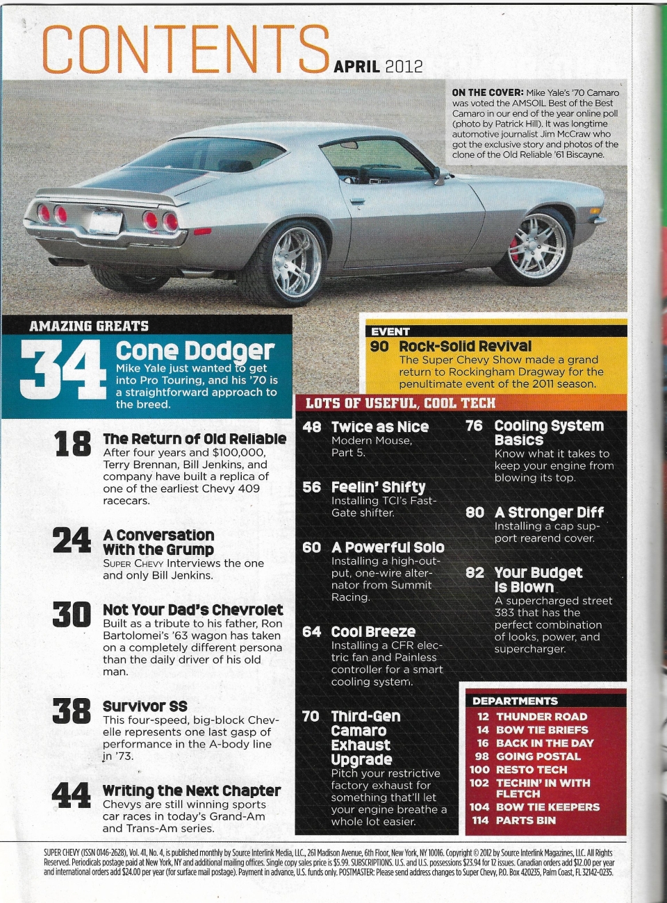 Reviews SUPER CHEVY 2012 APR - GRUMPY TALKS,OLD RELIABLE, 6 PACK TECH, YALE '70 CAMARO