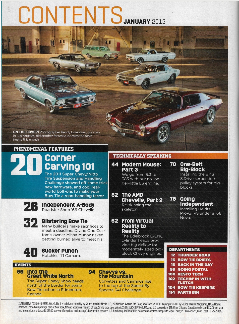 Reviews SUPER CHEVY 2012 JAN - SUSPENSIONS, '66 CHEVELLE, HOTCHKISS '71 CAMARO,MOUSE #3