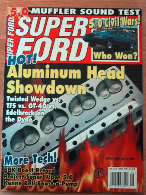 On the Cover: This issue marks the first Super Ford with a digitally-composed main cover image. As such, we'd like to credit the creative heroes behind its production. Chuck James, our photography manager, individually photographed the Edelbrock aluminum cylinder head and burning rubber cement with 4x5 Fujichrome Provia film inside an Omega View camera with a 21 Omm lens. After the best images were selected by Art Director Debbie Miller, Scanning Goddess Pat Hays scanned them into the digital world via DPG's Screen DTS1 030 drum scanner. From there, Pat - with lots of help from Dinah George, our digital pre-press systems administrator, and Julie Koerner, former electronic imaging specialist and current Corvette Fever managing editor - imported the scanned images into Adobe Photoshop and cut, pasted, layered, masked, smudged and airbrushed them into the single 50-megabyte image found on this month's cover.