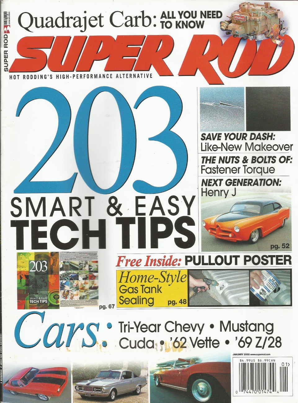 Reviews SUPER ROD 2003 JAN - Q-JET Spcl, TANK SEALING, HENRY J, DASH FIX
