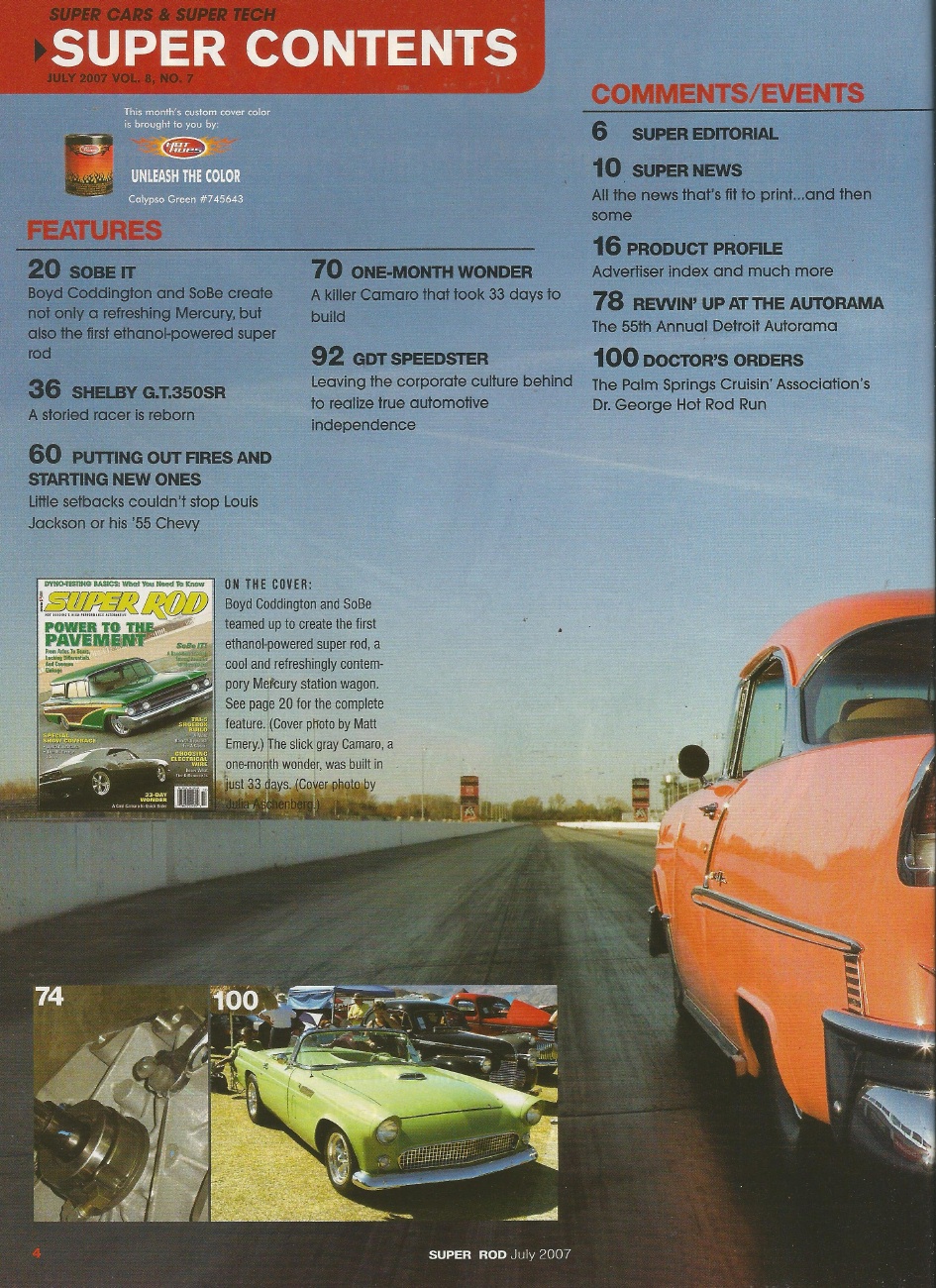 Reviews SUPER ROD 2007 JULY - DYNOING, WIRING, FIREWALL BUILT, GT350SR