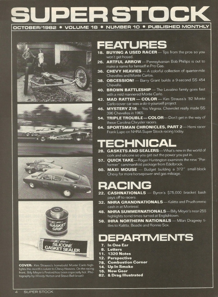 Reviews SUPER STOCK 1982 OCT - PHILLIP, GRAND NATS, HOT CHEVIES, Z-16, LUPO