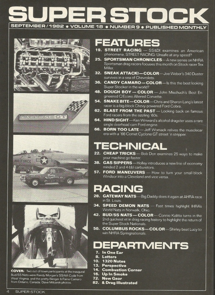 Reviews SUPER STOCK 1982 SEPT - STREET RACING, GATEWAY, WEBER, LANGs COBRA