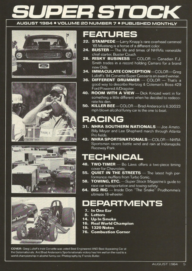 Reviews SUPER STOCK 1984 AUG - LULLOFF, FJ SMITH, SPORTS & SOUTHERN NATS