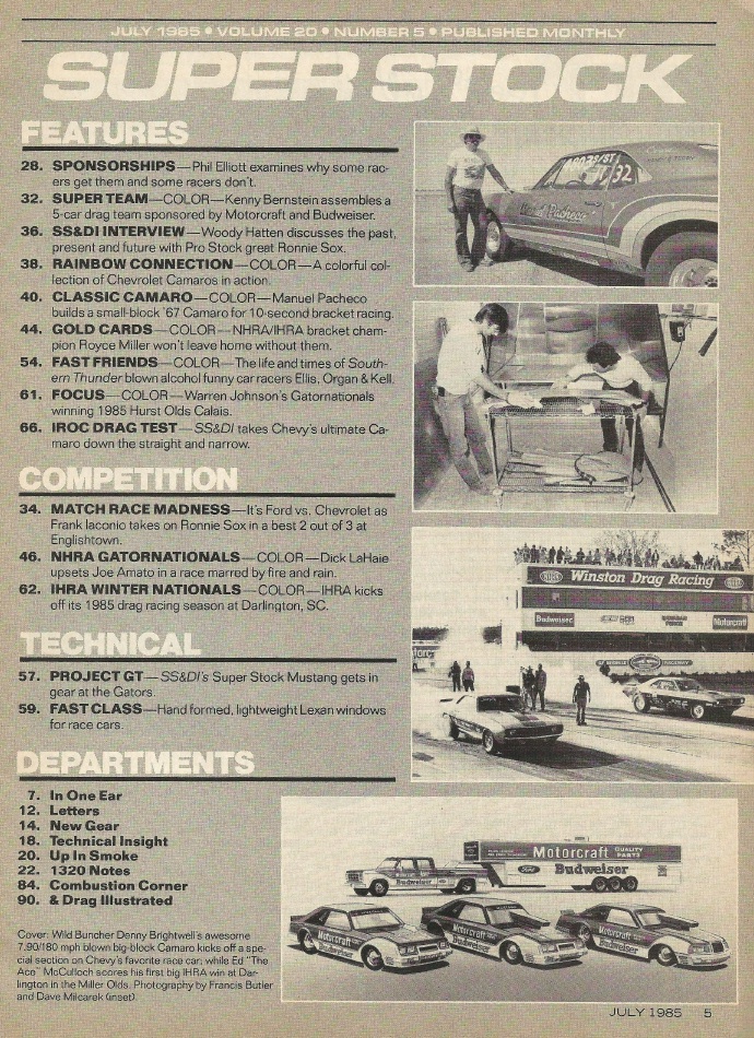 Reviews SUPER STOCK 1985 JULY - BERNSTEIN TEAM, RONNIE SOX, IROC-Z TEST