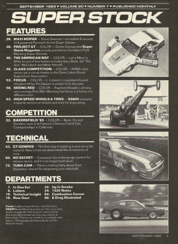 Reviews SUPER STOCK 1985 SEPT - SWEITZER, FUEL/GAS NATS, ESTEVEZ, BLUE MAX