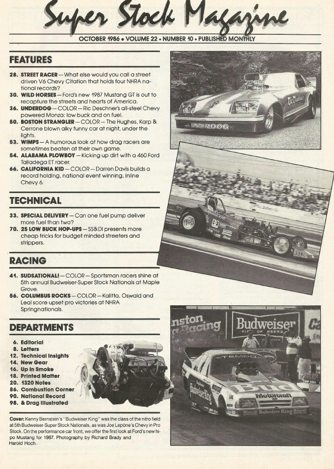 Reviews SUPER STOCK 1986 OCT - 5.0 GT Tst, DESCHNER, SPRING & S/S NATIONALS
