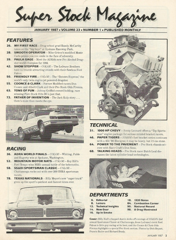 Reviews SUPER STOCK 1987 JAN - McCARTHY, GRICCO, SONNYs HOT RAT, GAGE, LEAL