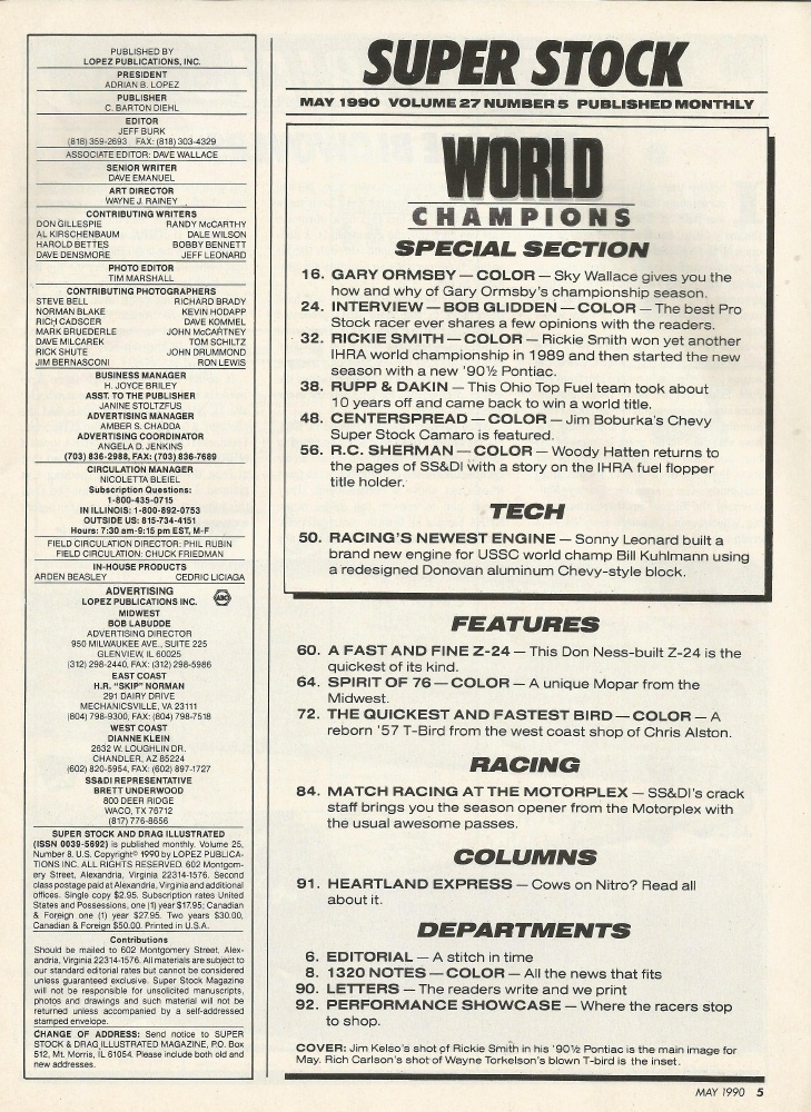 Reviews SUPER STOCK 1990 MAY - ORMSBY, GLIDDEN, RICKIE, RUPP-DAKIN, '66 HEMI