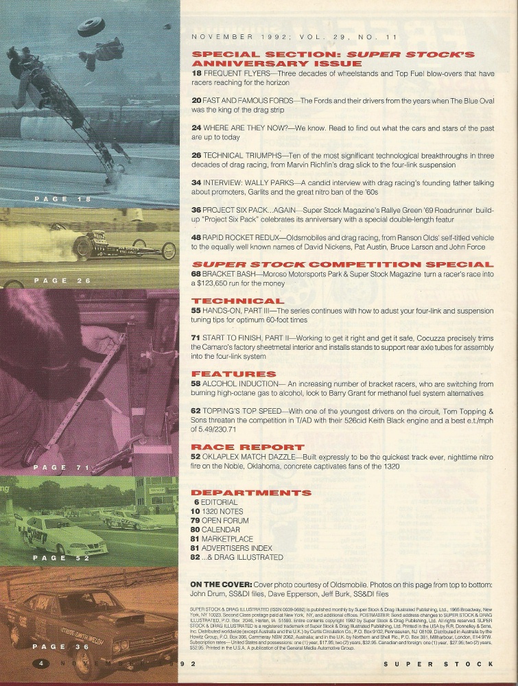 Reviews SUPER STOCK 1992 NOV - CAMARO BUILD 2, REMINISCING, PARKS, 6-PACK