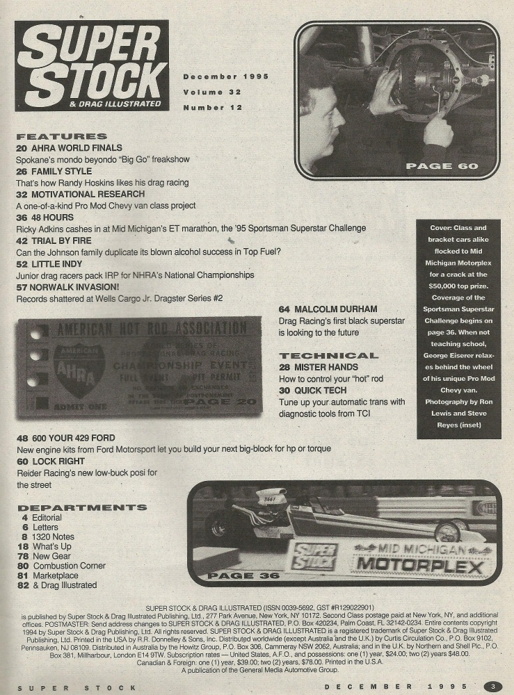 Reviews SUPER STOCK 1995 DEC - WORLD FINALS, HOSKINS, MALCOLM, KID RACING
