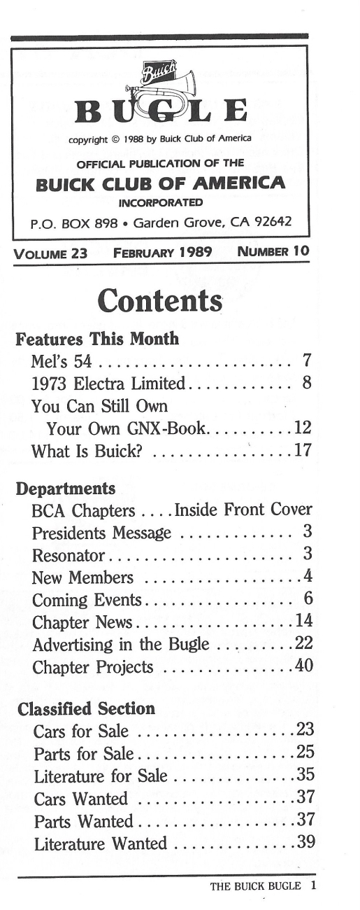 Reviews THE BUICK BUGLE 1989 FEB - '73 MODEL 4V37, '54 MODEL 61