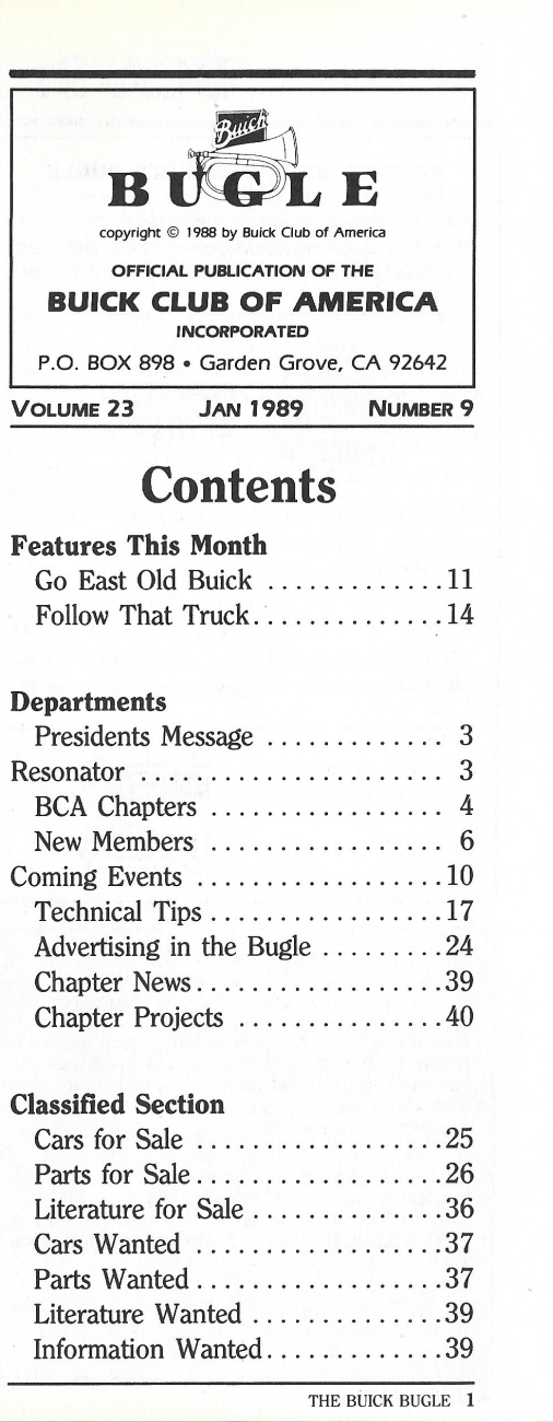 Reviews THE BUICK BUGLE 1989 JAN - '50 MODEL 41D DYNAFLOW, '41 MODEL 71C ROADMASTER