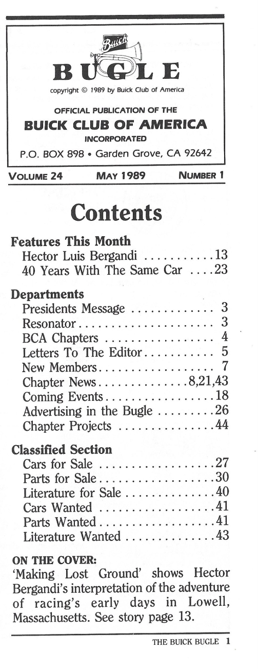 Reviews THE BUICK BUGLE 1989 MAY - '48 MODEL 56S, HECTOR BERGANDI