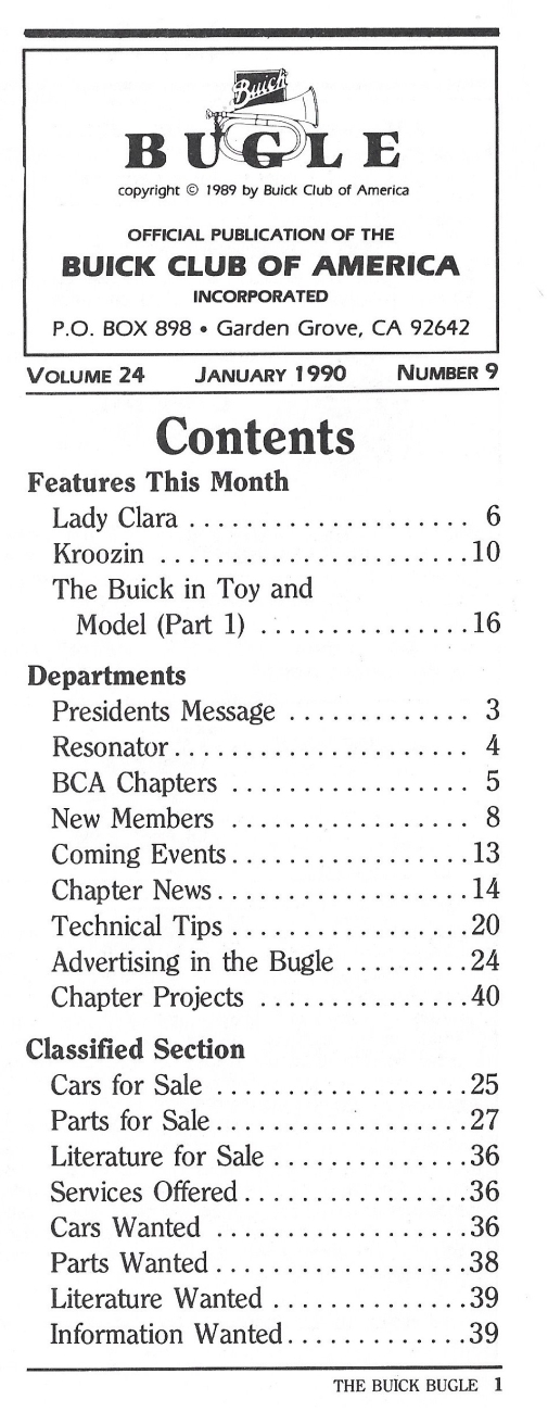 Reviews THE BUICK BUGLE 1990 JAN - '31 MODEL 66 S, '70 MODEL 8467 CUSTOM CONV COUPE