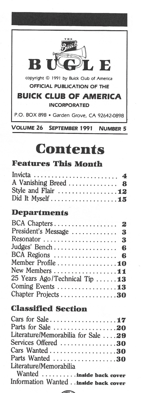 Reviews THE BUICK BUGLE 1991 SEPT - '62 INVICTA CONV, '69 46667 GS 400 CONV