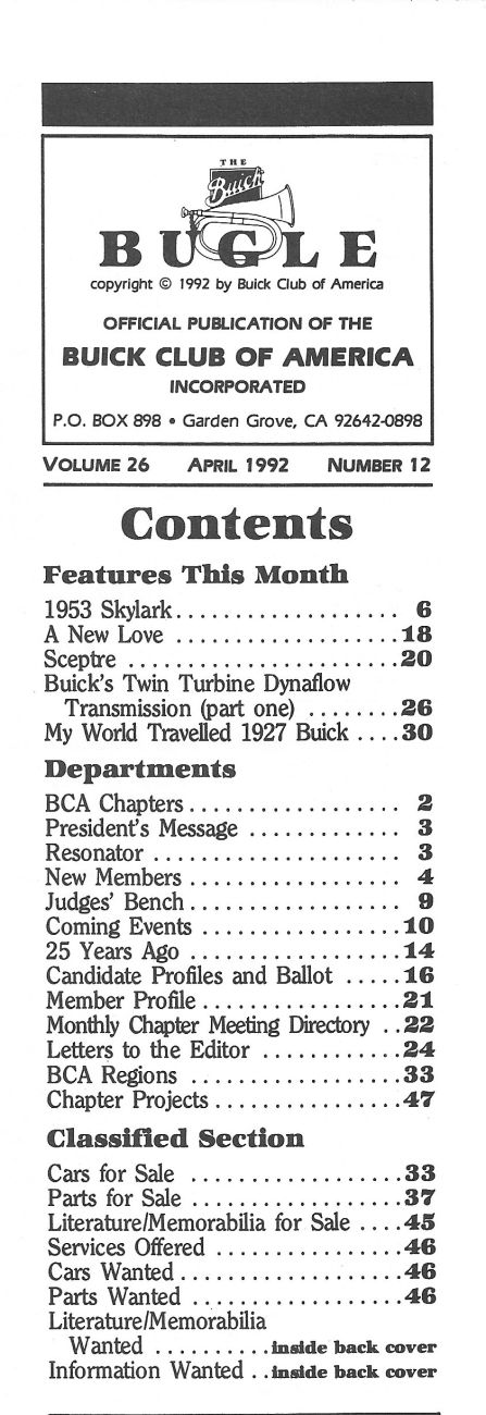 Reviews THE BUICK BUGLE 1992 APR - '53 MODEL 76X - 2 DOOR ROADMASTER RIVIERA, '39 M 666