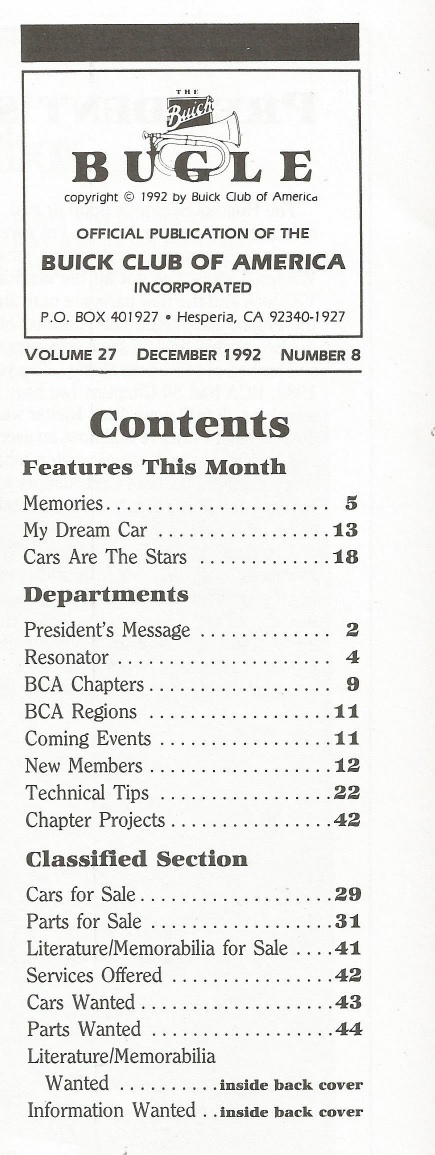 Reviews THE BUICK BUGLE 1992 DEC - 1953 MODEL 76C, 1941 MODEL 47