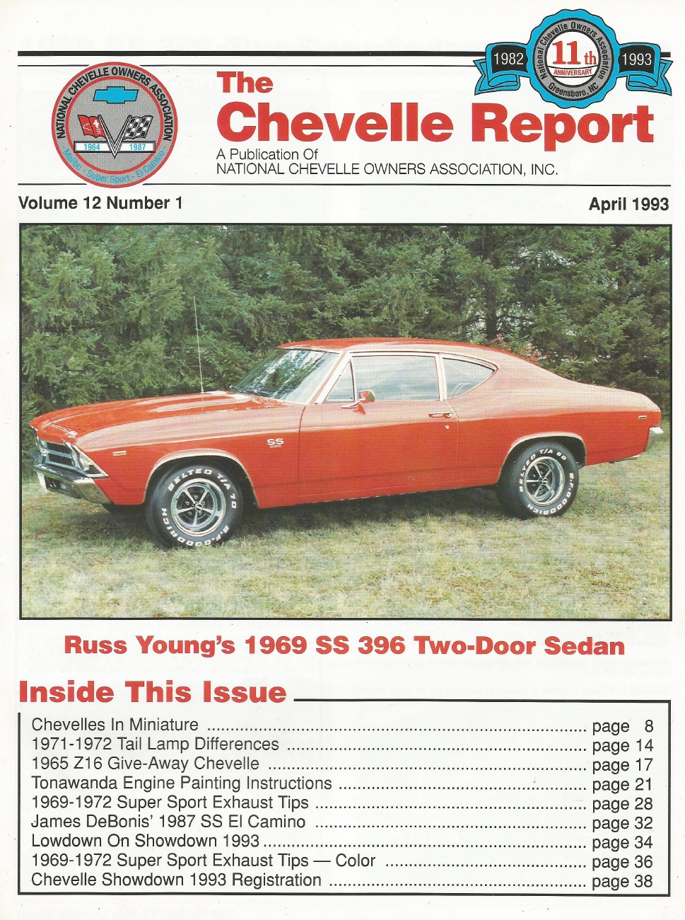 Reviews THE CHEVELLE REPORT 1993 APR - '87 SS EL CAMINO, '69 SS396 POST,ENGINE PAINTING