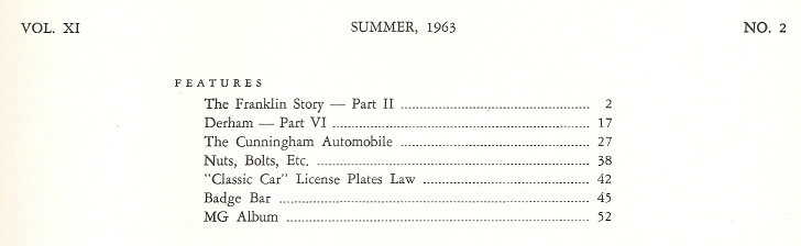 Reviews THE CLASSIC CAR 1963 SUMMER - CUNNINGHAM, MG, CLASSICS FROM CHICAGO