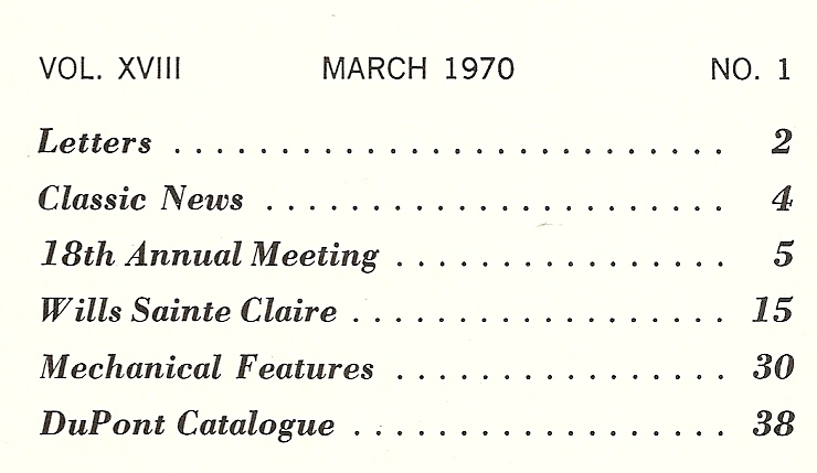 Reviews THE CLASSIC CAR 1970 MAR - WILLS SAINTE CLAIRE, DUPONT CATALOG,18TH ANNUAL MEET