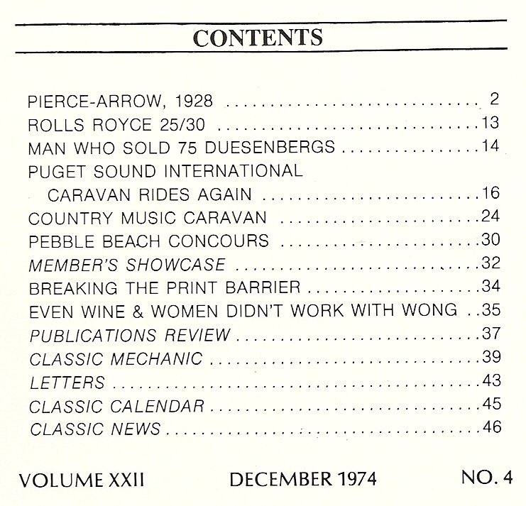 Reviews THE CLASSIC CAR 1974 DEC - PIERCE ARROW '28, ROLLS ROYCE 25-30, PEBBLE BEACH*