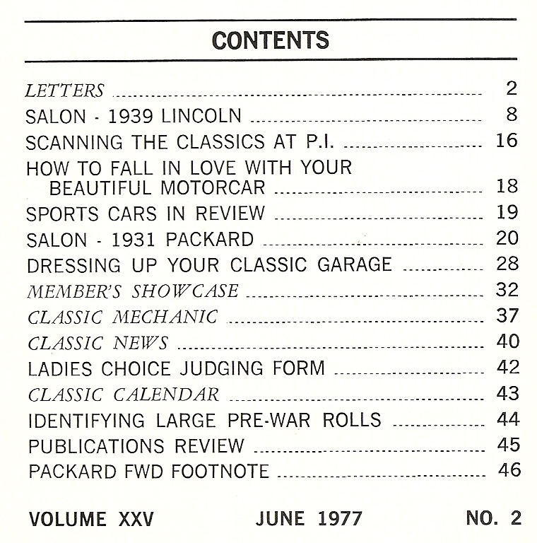 Reviews THE CLASSIC CAR 1977 JUNE - '39 LINCOLN V-12 K404-B, '31 PACKARD 840 5-SEDAN