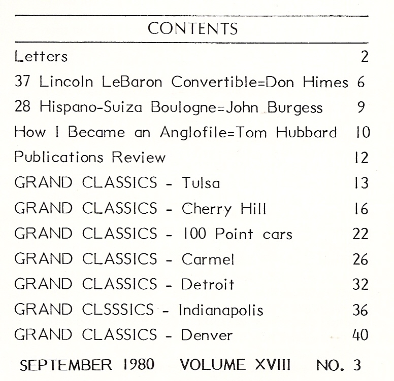 Reviews THE CLASSIC CAR 1980 SEPT - '37 LINCOLN LEBARON CONV, '28 HISPANO-SUZIA BOULOGNA